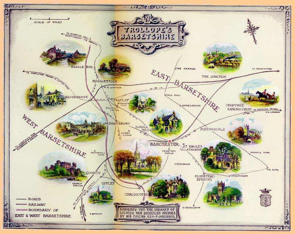 Readers, however, have always cherished Trollope’s presentation of a world which seemed, in Nathaniel Hawthorne’s words, “as real as if some giant had hewn a great lump out of the earth and put it under a glass case, with its inhabitants going about their daily business, and not suspecting they were made a show of.” Of his fictional county of Barset, Trollope himself declared that to him, it had “been a real county, and its city a real city, and the spires and towers have been before my eyes, and the voices of the people are known to my ears, and the pavement of the city ways are familiar to my footsteps.” He felt most strongly about his characters: